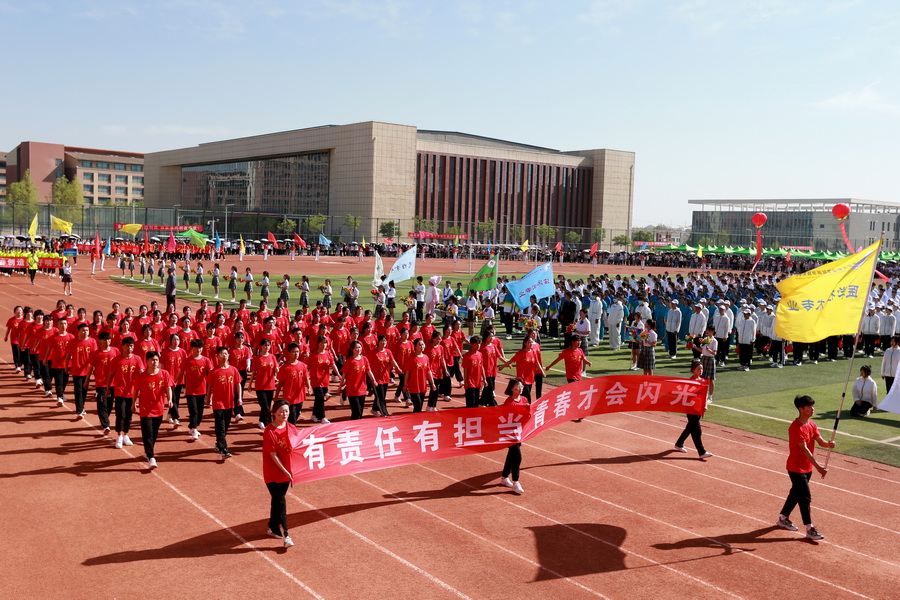 5月31日上午,365英国上市官网在线第七届田径运动会在学校体育场拉开帷幕,全校近万名师生共同参与这一年一度的校园体育盛事。全体校领导和各职能部门、二级学院负责人出席开幕式,开幕式由副校长康逢民主持。