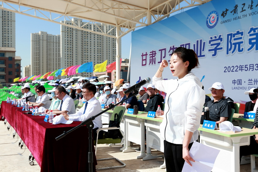 随着激昂的运动员进行曲响起,国旗、校旗、校徽、口号(文明、健康、团结、奋进)、彩旗队、花束队、裁判员代表队、各专业运动员代表队方阵依次入场。各方阵队伍步伐整齐、口号嘹亮,青春洋溢的笑脸、迎风飞舞的彩旗、鲜艳夺目的花束无不展现出甘卫院人的青春活力与意气风发。