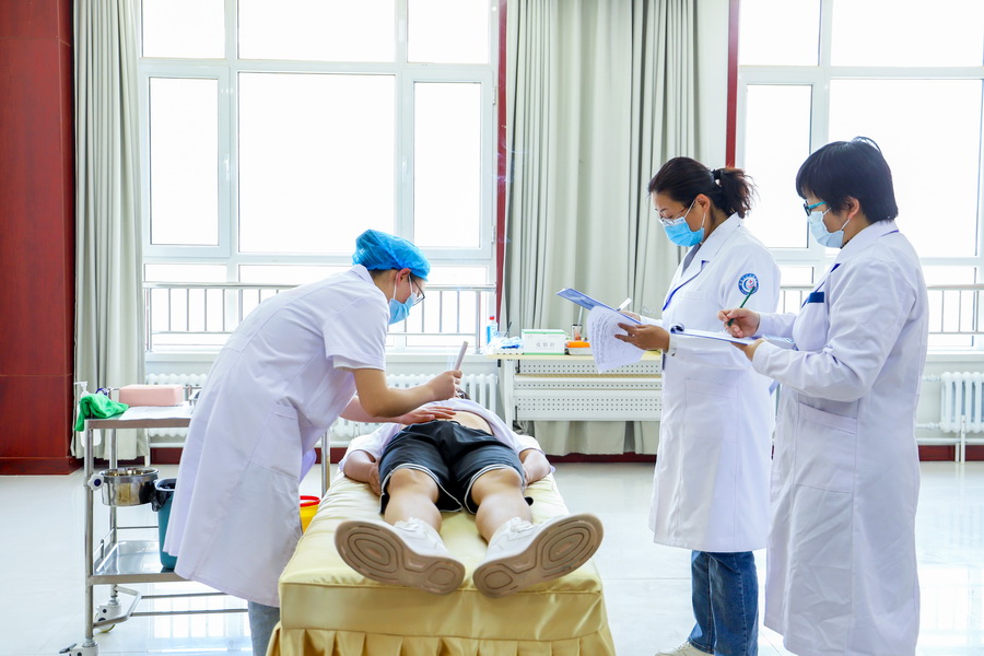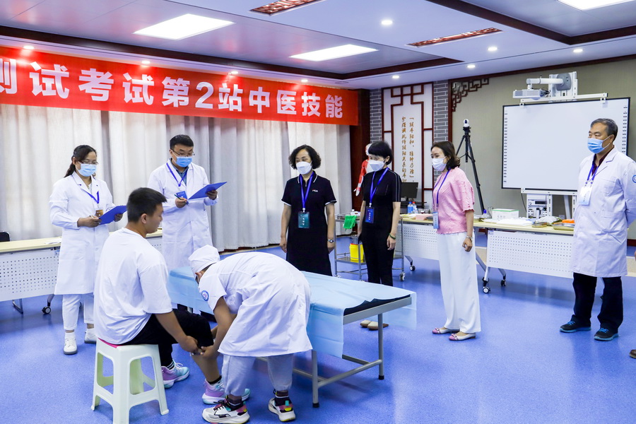 中医药学院在国家中医药管理局中医师资格认证中心的培训和学校领导小组的指导下,对考场设计、考场布局、考试流程等进行了反复推演,对考官、考务、标准化体检者、技术人员和引导员进行了分批次培训,对各类模型、器械、耗材等用品进行了仔细核对检查,全力保障水平测试的顺利进行。