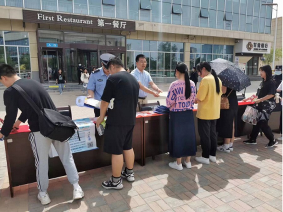 三、学生工作处、党委宣传部、保卫处等部门在学校一号餐厅广场开展了《珍爱生命 远离毒品》联合宣传教育活动,邀请到西岔镇派出所温佩东警官进行全程指导。学校三百余名师生参加了本次活动。