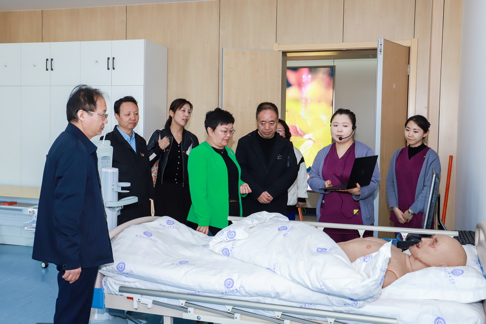随后,周敬一行在毕效武等的陪同下实地参观了学校临床护理学院母婴护理实训基地、老年人护理实训中心、中医药学院实训中心,详细了解各功能室设施设备、软件技术和教学应用情况,仔细听取工作人员的介绍。周敬一行在参观学习中对365英国虚拟仿真技术和医学实训中心建设表示赞赏,双方就护理服务、老人照护等方面的特色及成果进行了探讨和交流,表示以此次交流学习为契机,将进一步加强与365英国的交流合作,共同推动双方专业建设更好发展。