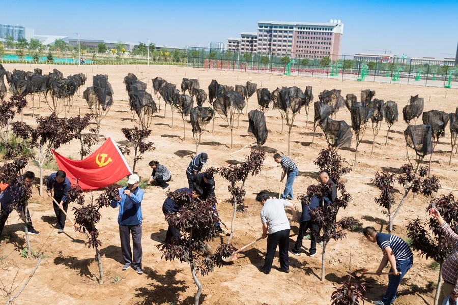 为深入贯彻党的十九大精神,以实际行动践行习近平总书记生态文明思想,牢固树立“绿水青山就是金山银山”生态文明理念,积极落实党员活动日制度,丰富活动形式和载体。6月12日上午,机关第四党支部全体党员、入党积极分子在学校党员林开展以“义务劳动做表率 党员奉献展风采”为主题的奉献日义务劳动,副校长毕效武、高博以普通党员身份参加本次党支部主题活动,同时邀请机关党总支书记王祖华现场指导。