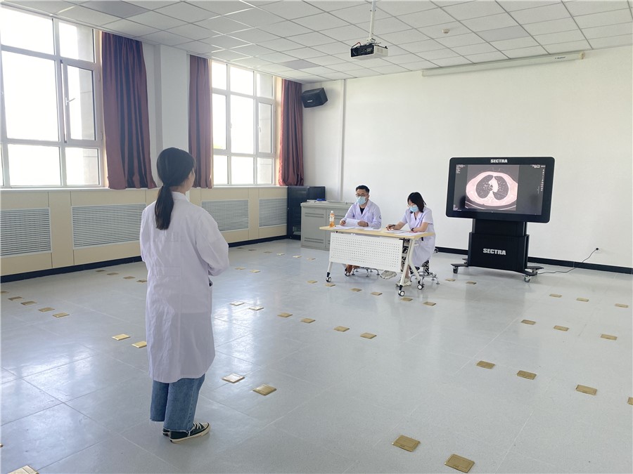 竞赛分为初赛、决赛两部分,于6月9日开赛,7月6日结束。2018级三年制医学影像技术10班、11班、12班、13班全体学生共210人参加了初赛。初赛形式为DR检查技术、CT检查技术、超声诊断与技术、影像诊断与影像解剖等理论知识测试,根据初赛成绩选拔出51名学生进入决赛。决赛前由指导教师对学生进行了集中辅导,学生利用课余时间勤学苦练影像技能。决赛内容包括DR检查技术、CT检查技术、超声操作技术、影像诊断与影像解剖4个项目,与全国职业院校医学影像技术专业竞赛的项目保持一致,评分标准严格按照国赛标准制定。由于新冠肺炎疫情影响,学生们无法在联盟医院完成CT检查项目的训练,故派遣李清华、徐文杰、王亚星等三名教师赴兰州新区第一人民医院进行CT检查项目教学视频的录制工作,以方便学生更好地掌握其基本操作,决赛采用口述和虚拟操作方式进行。本次竞赛项目贴近临床影像实际,既重视职业素质和人文素养的考核,又较好地衔接了国赛流程。参赛学生精心准备、精神饱满,评委老师裁判严谨、一丝不苟。最终评选出一等奖5名、二等奖10名、三等奖15名,优秀指导教师5名。