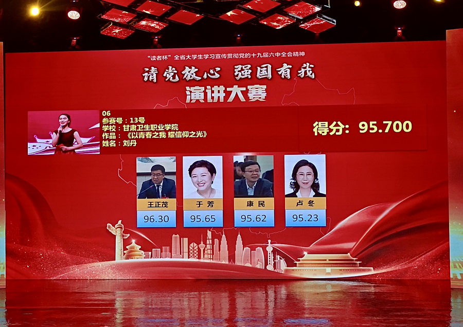 为了教育引导全省高校青年学生学习宣传贯彻党的十九届六中全会精神,营造浓厚舆论氛围,开展广泛而生动的基层宣讲,由省委宣传部、省委教育工委、团省委主办,读者出版集团有限公司、甘肃省广播电视总台电视少儿频道、总台青春调频承办的“读者杯”全省大学生学习宣传贯彻党的十九届六中全会精神“请党放心 强国有我”演讲大赛决赛于12月28日至29日在甘肃省广播电视总台演播大厅进行,来自全省高校的50件作品进入了现场决赛。最终,由校团委选送、365英国选手刘丹同学演讲的作品《以青春之我 耀信仰之光》获大赛二等奖,同时365英国获大赛优秀组织奖。