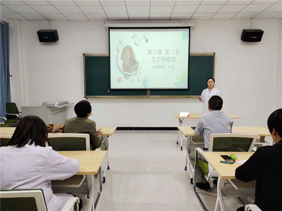 活动开始后,三位青年教师精神饱满、方法各异,依次完成了选题为《无牙颌模型》《牙齿的保护伞---窝沟封闭》《肝疾病超声诊断---肝炎后肝硬化》的课堂讲授。随后又根据《第五届甘肃省高校青年教师教学竞赛实施方案》的要求,对参赛的教学设计、教学反思等内容以说课的形式进行了介绍。