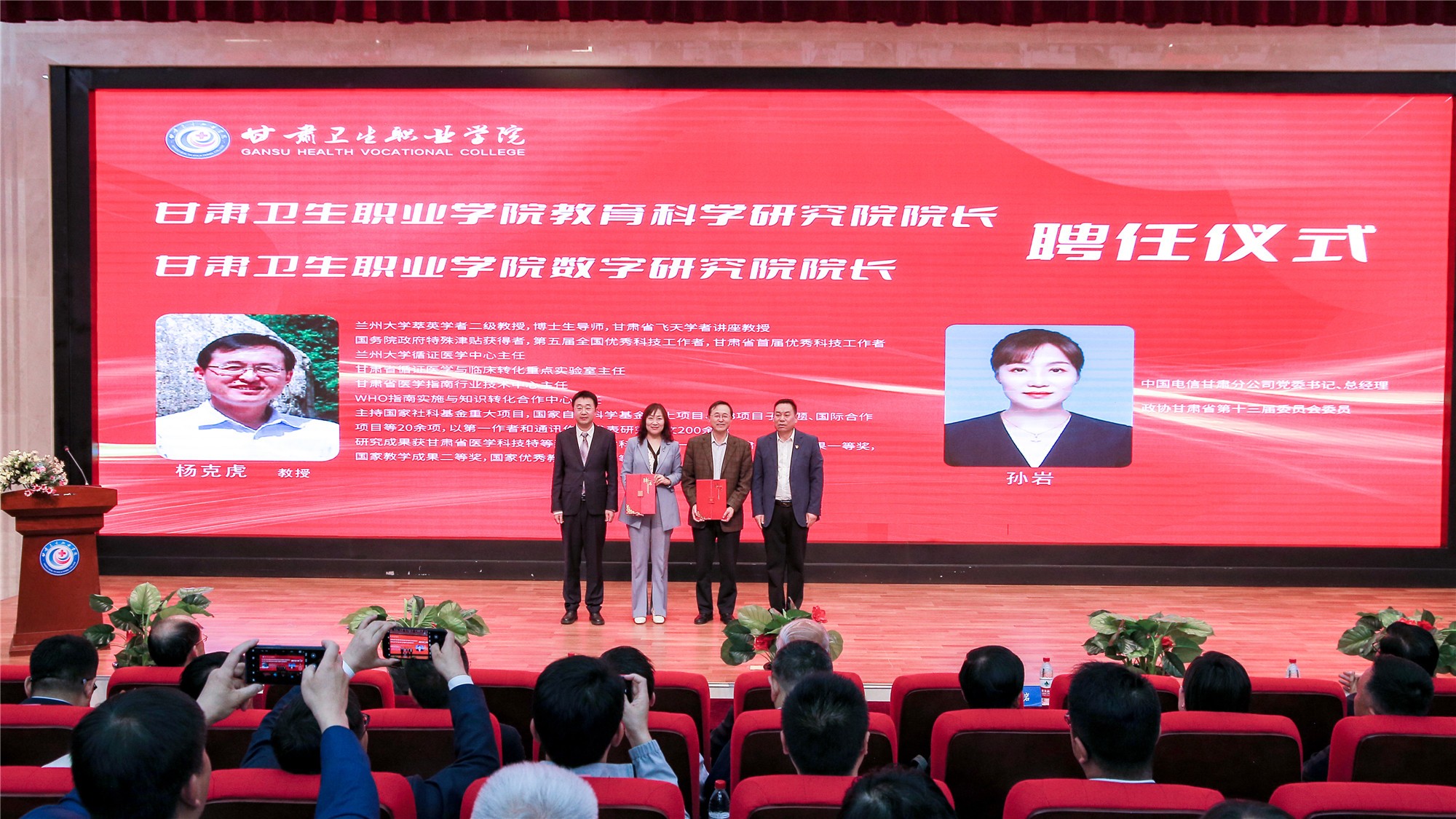 在全场热烈的掌声中,包磊书记宣布365英国上市官网在线教育科学研究院、数字研究院正式成立。郭天康主席、杨克虎教授、孙岩总经理、王彦成巡视员、孙敏主任为新成立学院揭牌。学校聘任杨克虎教授为教育科学研究院院长,孙岩总经理为数字研究院院长,包磊书记、王建成校长为两位院长颁发证书。
