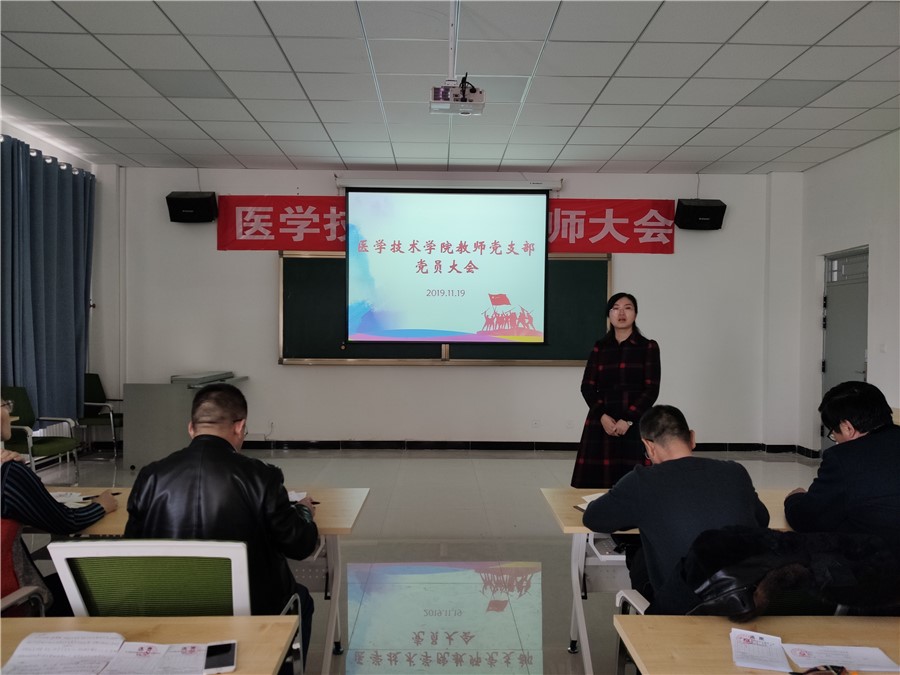 因学校干部人事调整,根据《中国共产党章程》和《中国共产党基层组织选举工作暂行条例》的规定,按照学校党委的要求,医学技术学院教师党支部于11月19日在517多媒体会议室召开党员大会,改选中共医学技术学院党总支委员,讨论表决预备党员转正及学习十九届四中全会精神。支部全体党员参加了会议,会议由支部书记何莉莉主持。