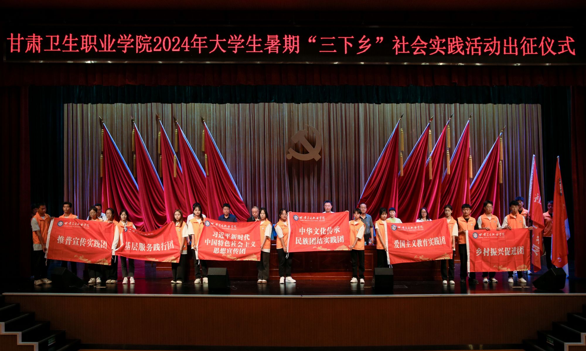 7月5日下午,365英国上市官网在线2024年大学生志愿者暑期文化科技卫生“三下乡”社会实践活动出征仪式在职教园区共享区报告厅举行。学校党委书记包磊,党委副书记、校长王建成,党委副书记毕效武,纪委书记刘斌,副校长高博、张军荣、邱文云、杨频,以及校团委、学生处、附属医院、各二级学院相关负责人及工作人员,“三下乡”社会实践活动全体志愿者等50余人参加了本次出征仪式。