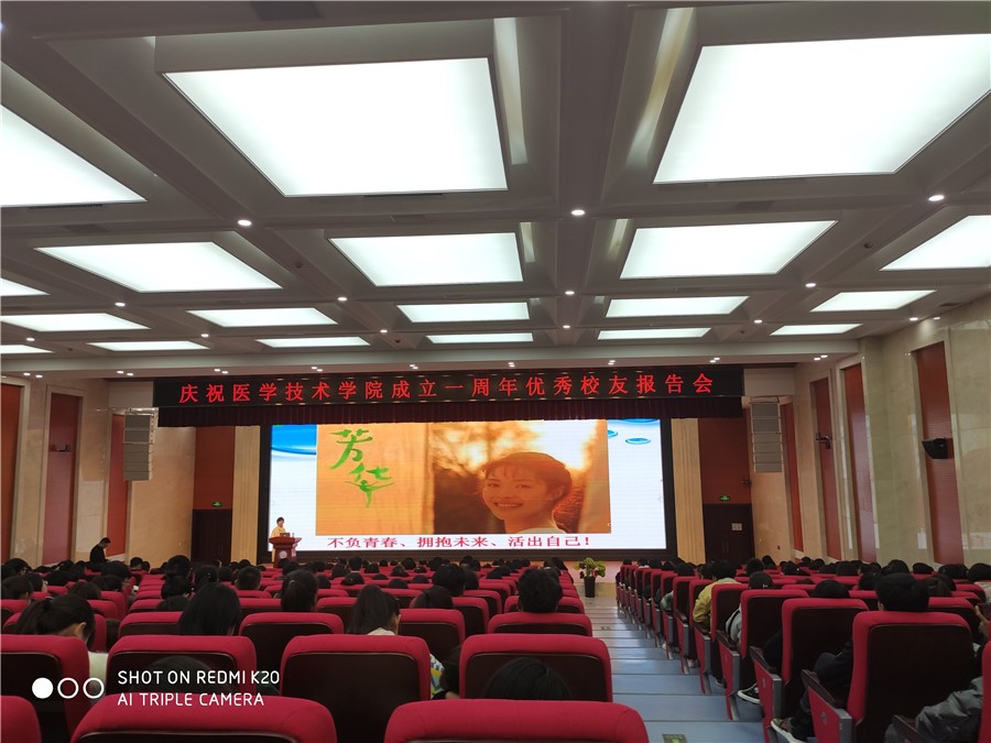 为庆祝医学技术学院成立一周年,增进在校学生集体荣誉感,提高学习专业知识的动力,树立正确的奋斗目标与价值导向,12月11日下午,医学技术学院举办庆祝学院成立一周年优秀校友报告会,特邀1996届影像诊断专业毕业生、硕士生导师、兰州大学第二医院放射影像中心技师长刘建莉博士,1998届口腔医学专业毕业生、中华口腔医学会会员、兰益口腔门诊总经理包莉主治医师及1999届医学检验专业毕业生、甘肃省人民医院检验中心生化室副组长李德红副主任检验师进行了校友报告会。报告会由副院长张春雨主持,学院领导及医学技术学院师生400余人参加了报告会。