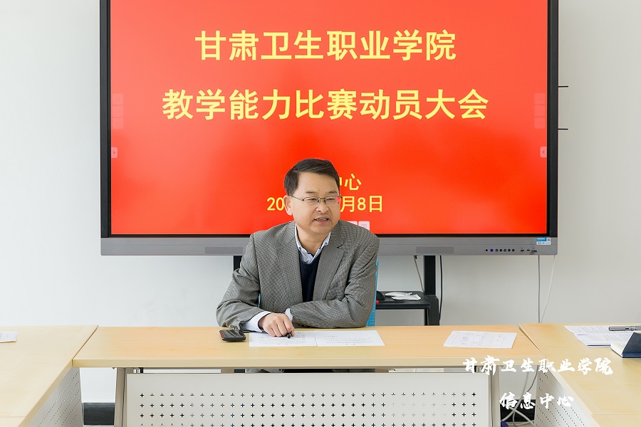 会议由信息中心负责人杜学海主持,黄刚副校长代表学院领导进行了赛前动员。黄刚副校长从教学能力比赛的赛事发展趋势进行了解读,并对参赛团队提出了几点要求:一是本次教学能力比赛学院确定由信息中心牵头,其他相关处室和系部全力配合;二是要求参赛团队在专家指导团队的指导下,尽快保质保量地完善优化自己的作品,争取在省级比赛中取得优秀的成绩;三是要求信息中心要全力以赴搞好本次比赛的技术保障工作,把本次比赛作为国家级比赛的练兵场。