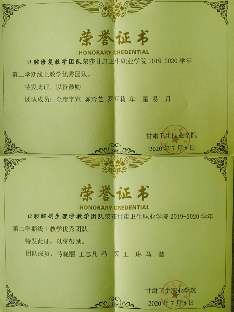 荣誉的取得,离不开学院对线上教学工作的高度重视、精心组织,离不开学院全体教师、工作人员的努力和付出。为保质保量完成线上教学工作,学院先后制定了《医学技术学院疫情期间线上教学准备工作安排 》《医学技术学院疫情期间线上教学实施方案》《医学技术学院疫情期间线上教学督查工作安排》《医学技术学院线上线下教学衔接工作预案》等文件,并积极有效实施,为学院做好线上教学工作提供了有力保障。学院通过执行线上教学院领导日值班制度、班主任日值班制度,成立口腔医学系、医学检验系、医学影像系“线上教学”督导小组和线上教学服务支持工作小组,利用课堂教学检查、专题会议、总结报告等工作形式,为教师实施线上教学提供着服务保障。学院教师通过认真学习线上教学操作平台,合理调整学期授课计划,精心准备线上教学资源,积极联系授课学生,保证了线上教学工作的有序开展。