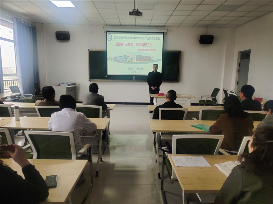 为了全面总结学院成立近两年在教学科研方面取得的成绩,梳理存在的困难和问题,研讨建设发展思路,部署今后的工作,10月14日下午,医学技术学院召开了主题为“加强教学科研工作、提高人才培养质量”的2020年教学科研工作会议,会议分两个阶段进行,第一阶段是专题工作报告;第二阶段是教学科研工作交流研讨。学院领导、全体专兼职教师参加了会议,会议由院长张志钢主持。